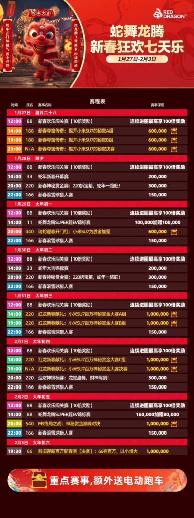 红龙新春献礼:小米SU7百万神秘赏金大赛